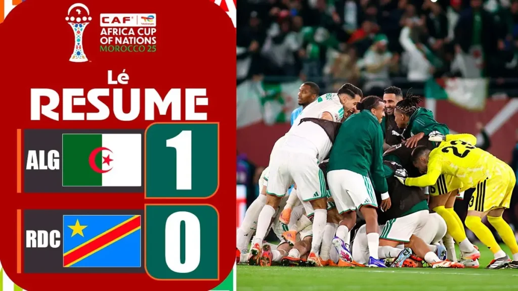 Au terme d’un duel âprement disputé, l’Algérie a validé son billet pour les quarts de finale de la Coupe d’Afrique des Nations 2025 en s’imposant face à la République démocratique du Congo (1-0), mardi 6 janvier, au stade Moulay El Hassan de Rabat.